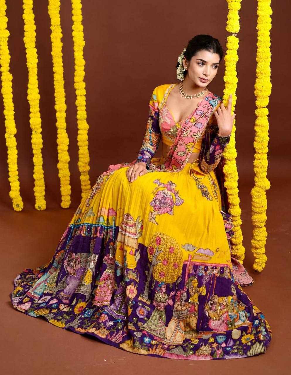 Name : PC 462 Yellow Kalamkari Lehenga