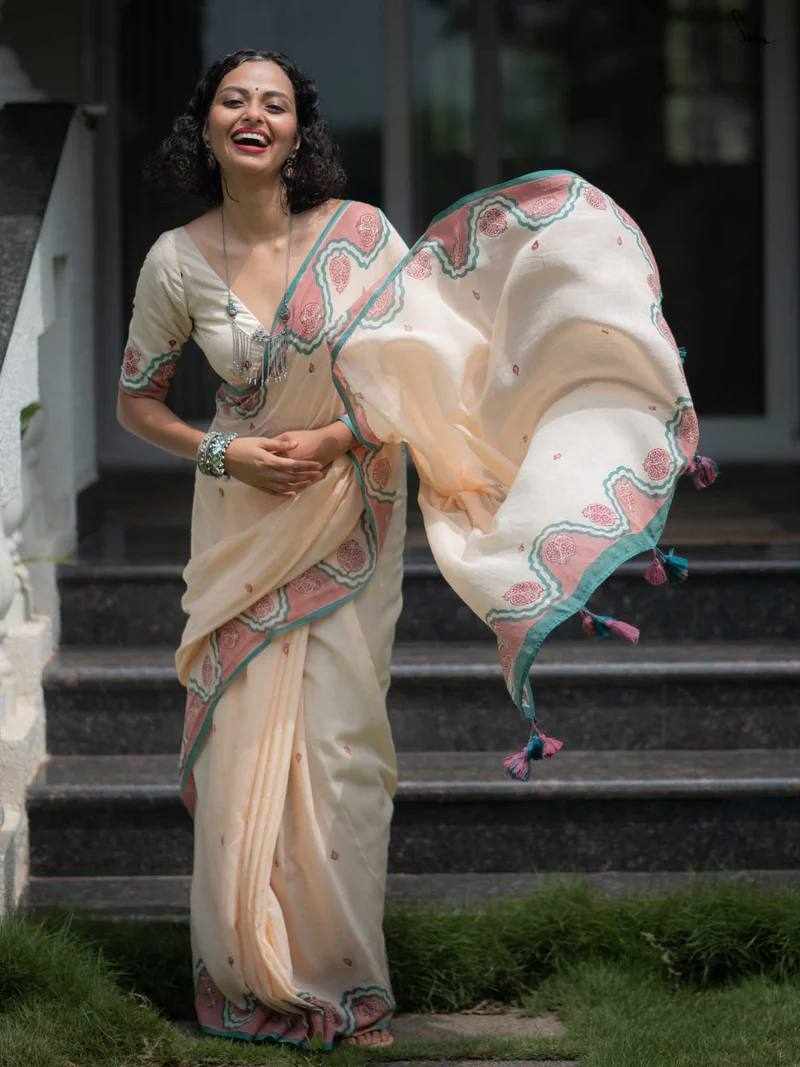 Saree Fabric: Premium Linen Cotton with beautiful digital print