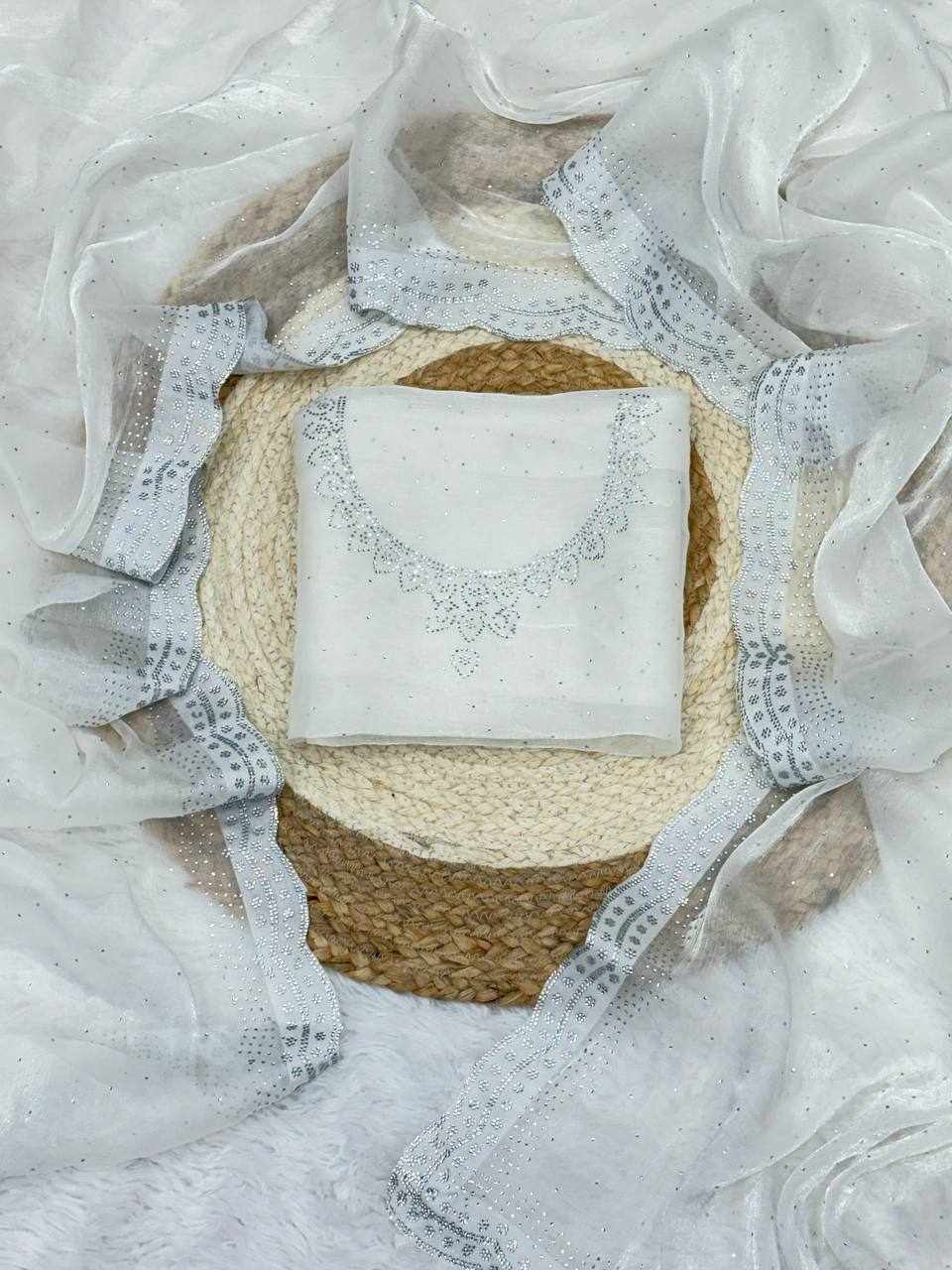 FABRIC :- Rich And Partywear Crystal Diamond Work In Pure Soft Burburry Silk