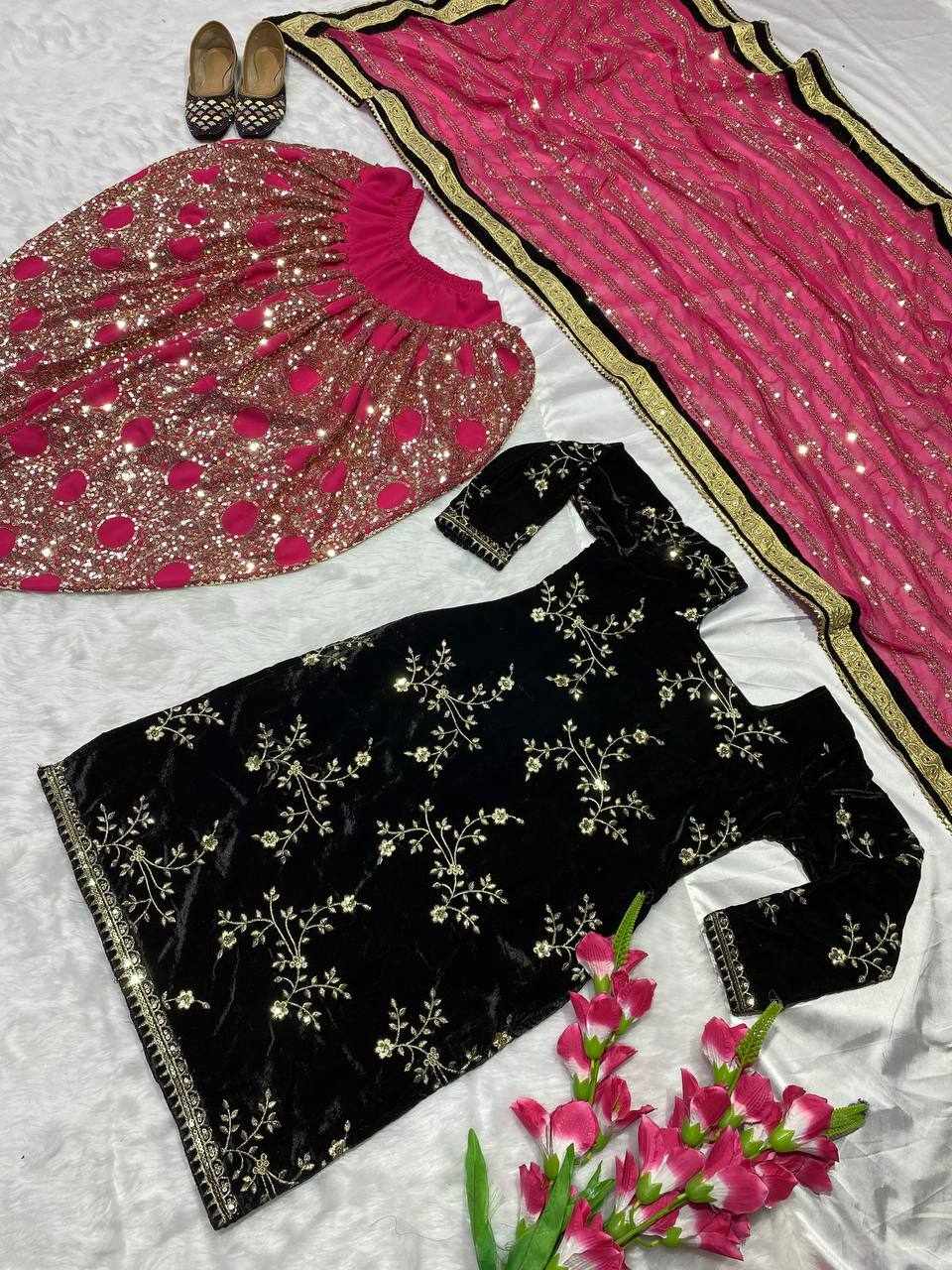 Top Fabric: Heavy Viscose Velvet with Heavy Embroidery 5mm Sequence Work with Sleeve