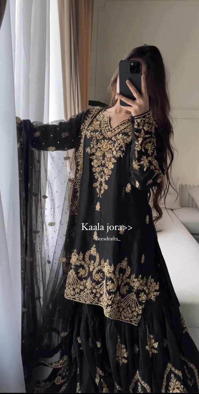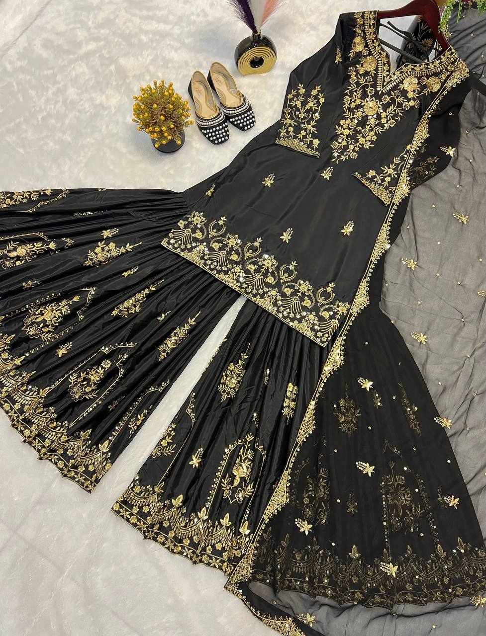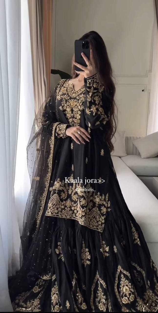 Top Fabric :- Heavy Natural Crep With Heavy 5mm Embroidery Sequence Work With Full Sleeve With Latkan Dori