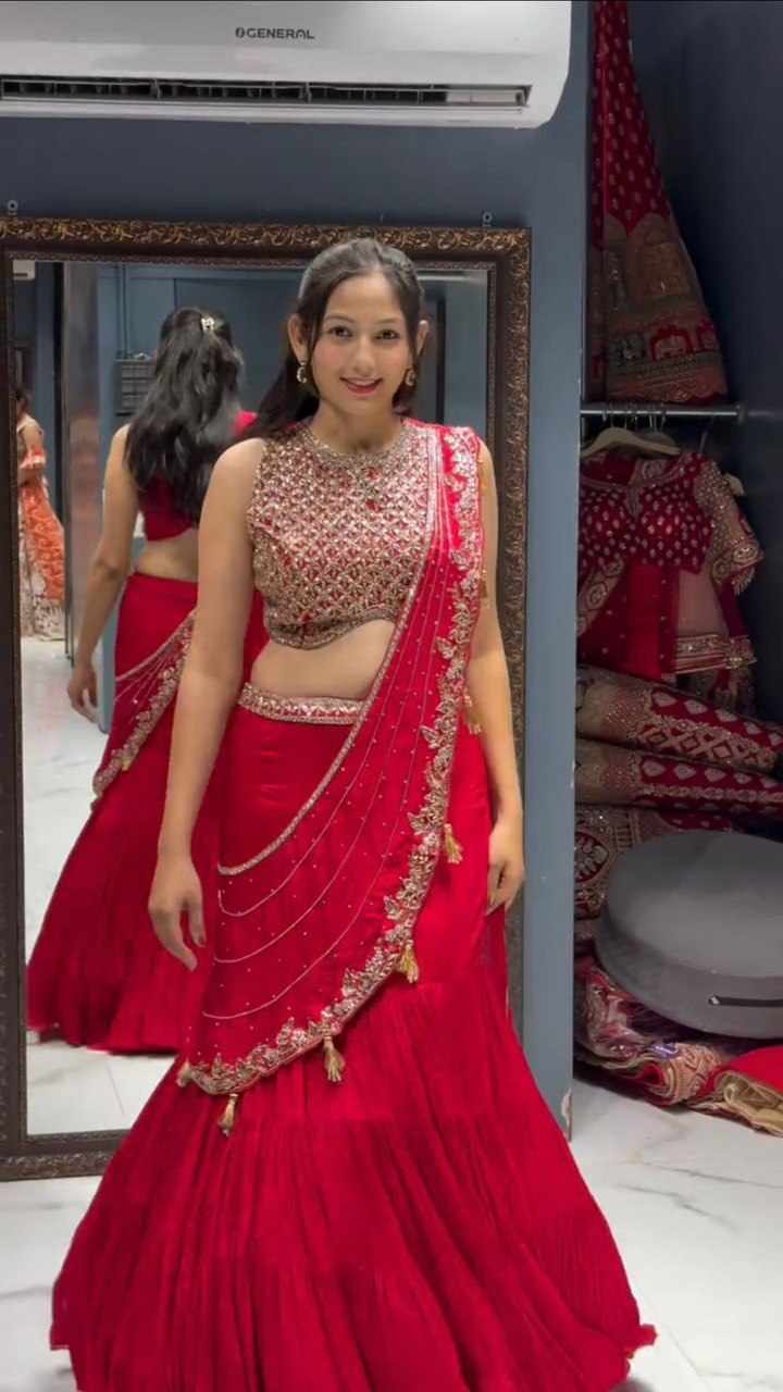 Lehengha Type: Ready to wear ruffle style up to 42 with elastic and side zip