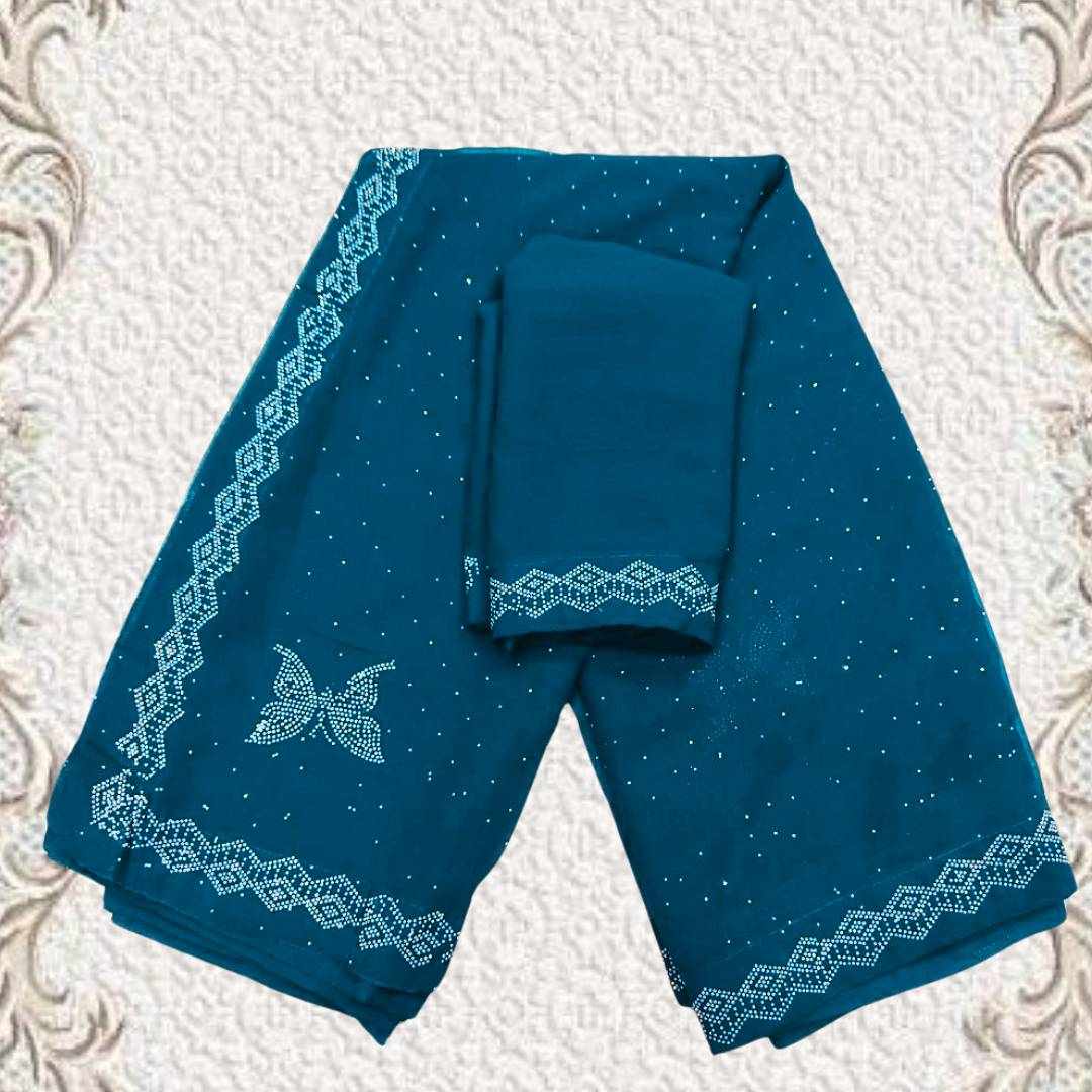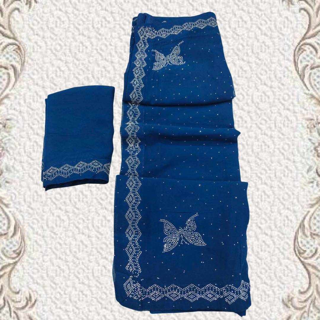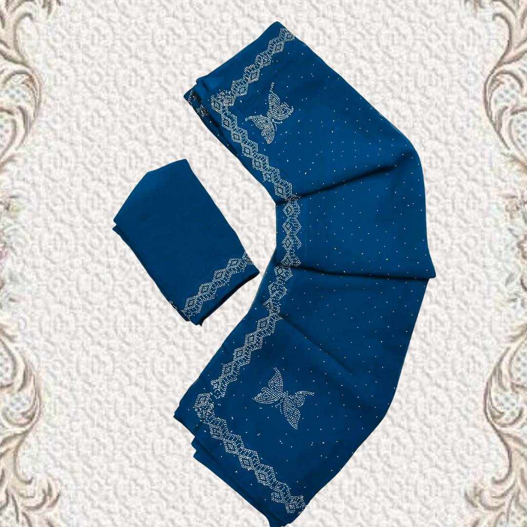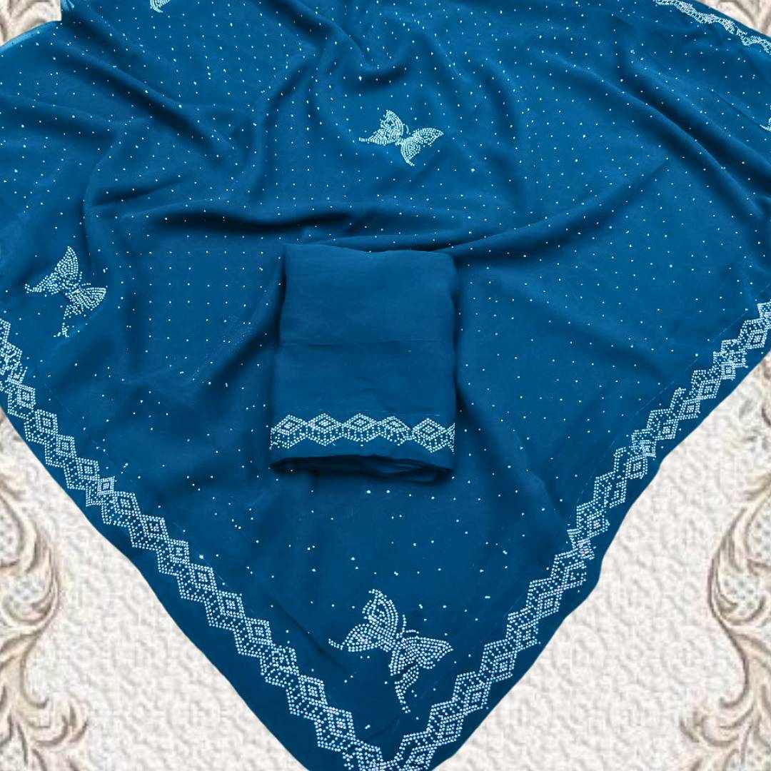 S4s Petrol Blue Siroski Butterfly Stones Lace Georgette Party Wear Saree