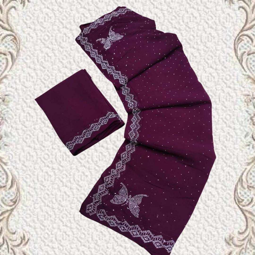 | Name : | S4s Wine Siroski Butterfly Stones Lace Georgette Party Wear Saree |