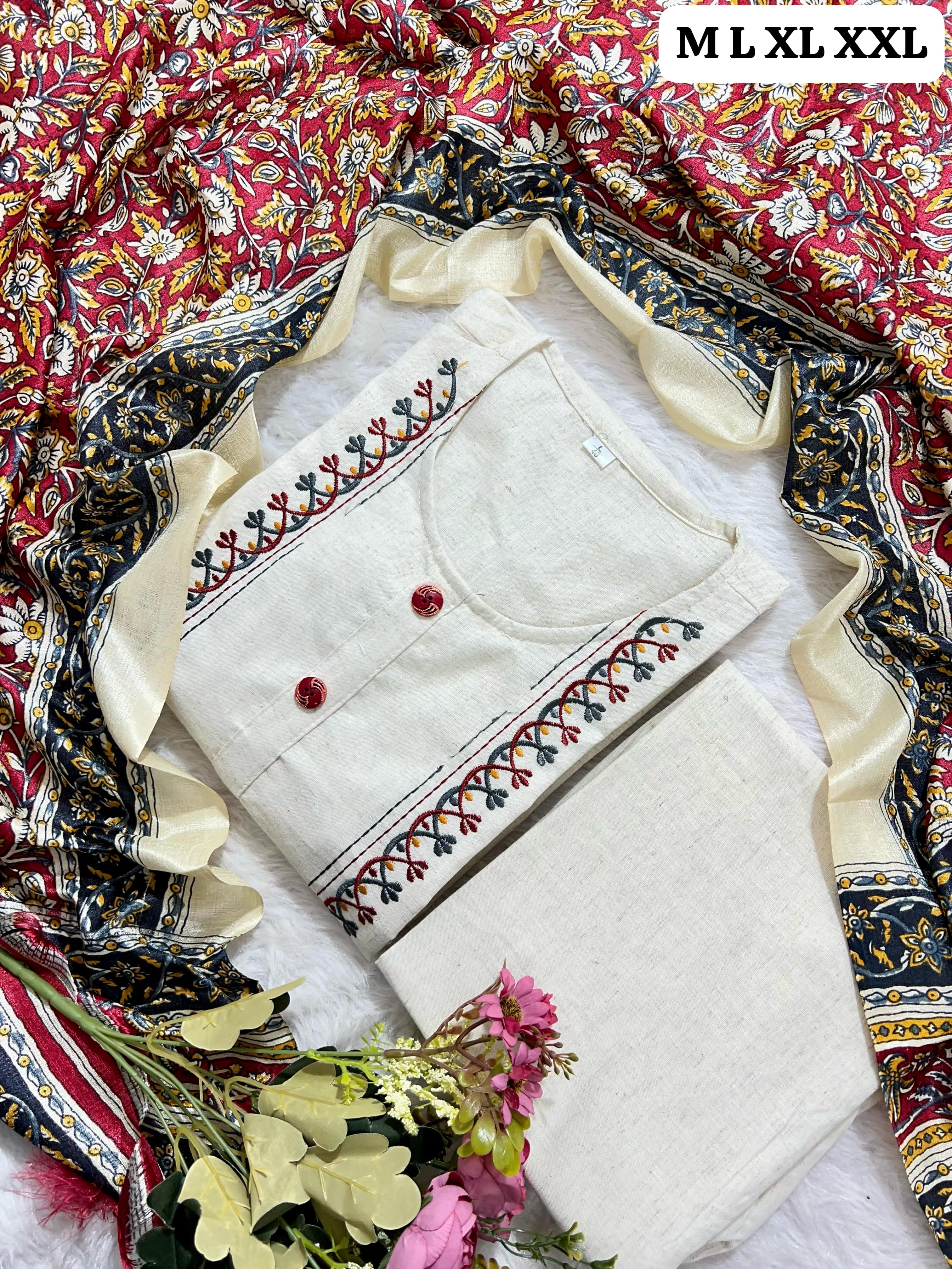 JKWH 997 Pure Fine Cotton Febric Embroidery Work A-line Kurti Set With Pocket