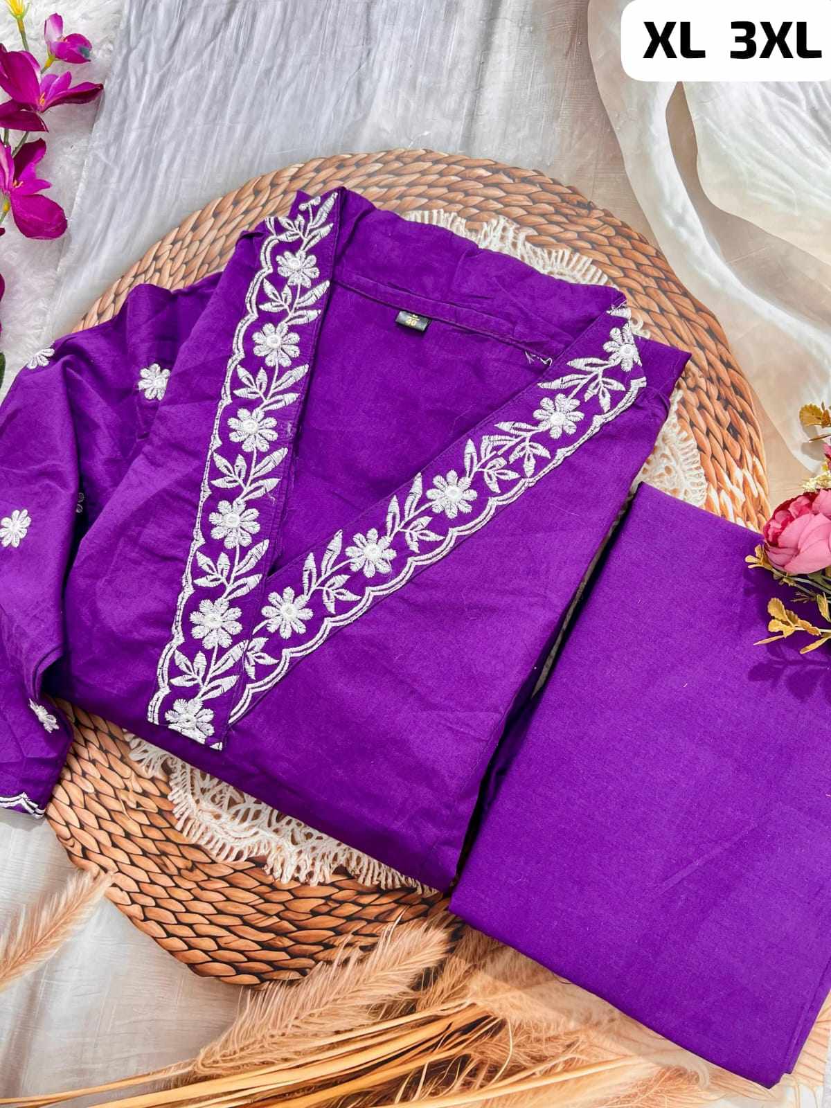 Designer Top Pant set in *Fine Cotton With Heavy thread Embroidery work on the yoke & Both side Pockets*