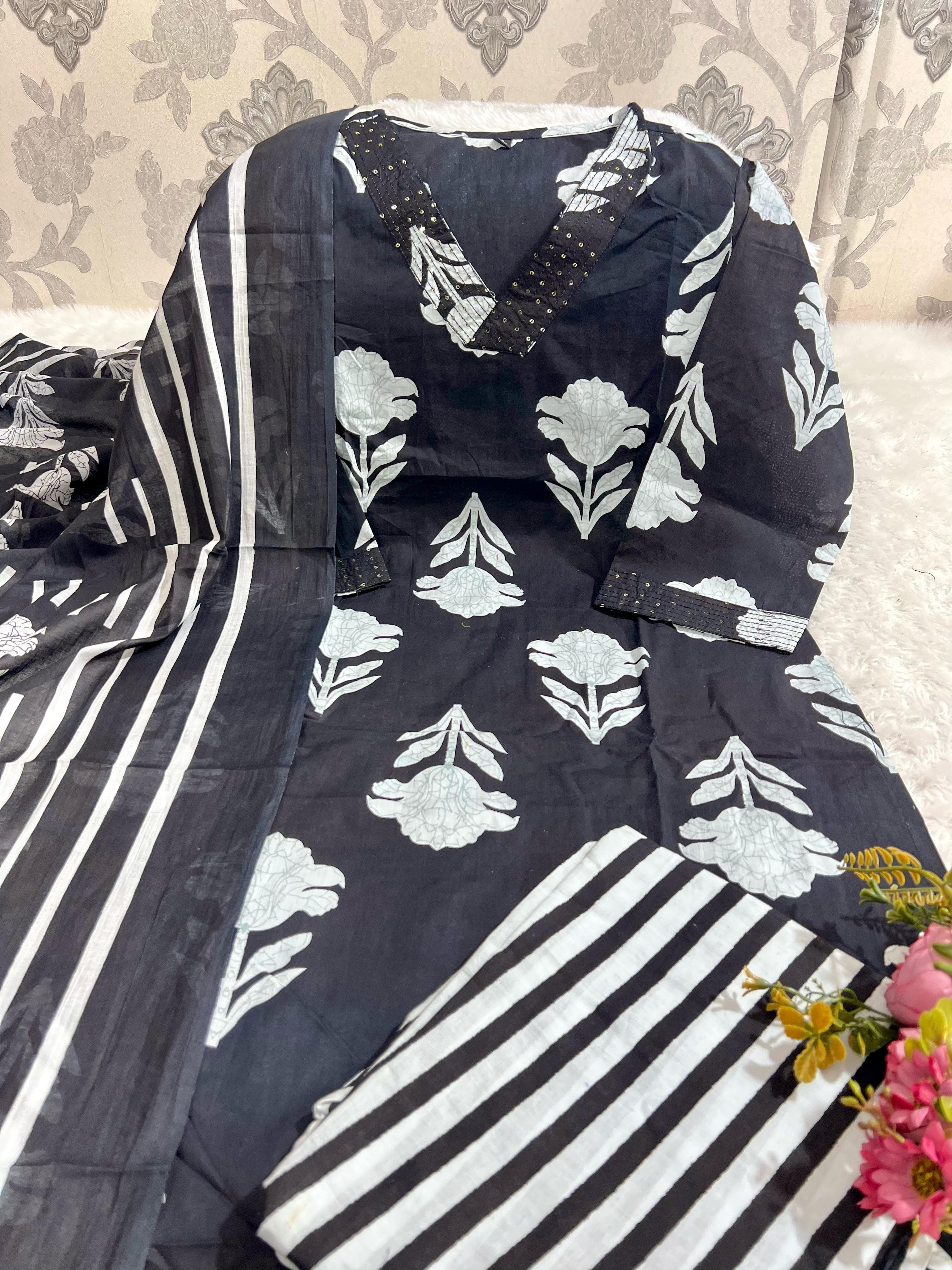 SF 4JU Pure fine Cotton fabric Kurti with Pant with cotton Sequence work Dupatta 1117 has been successfully added to your cart .